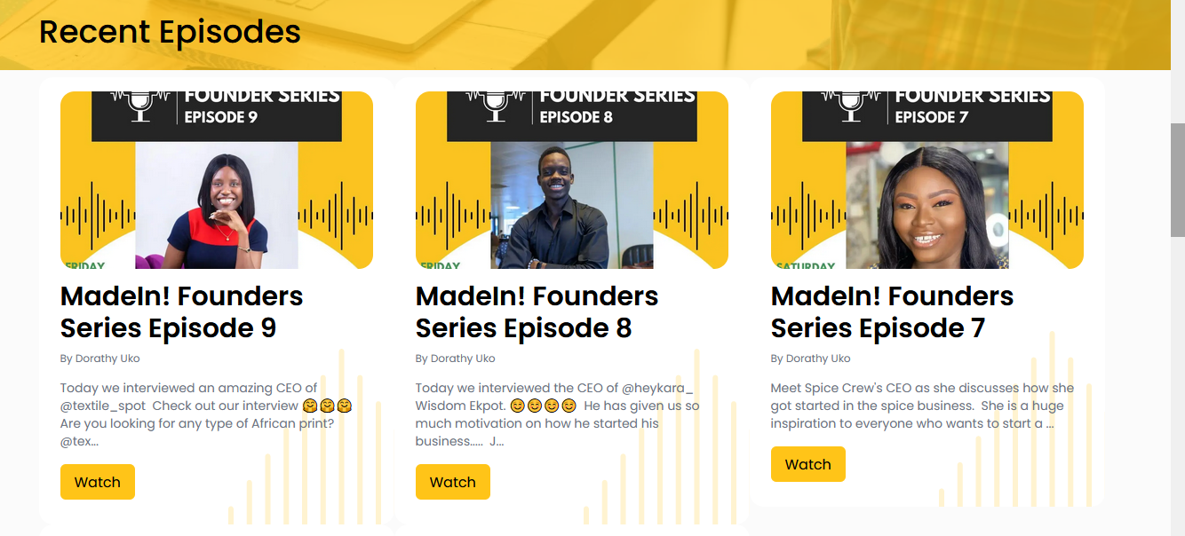 Visit https://madeinafricabrands.com/interviewsarrow-up-right to listen to these interviews